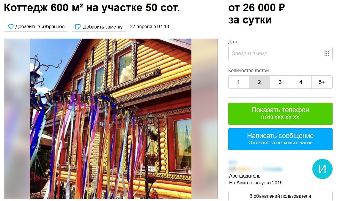 Привлечь может зона для пикника с огромным столом на улице, а также бассейн и баня – но последние уже за дополнительную плату. Правда, практически за среднемесячную зарплату во Владимирской области даже с размахом не отдохнуть – проведение шумных вечеринок категорически запрещено, сообщается в объявлении.