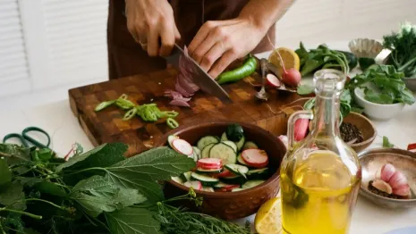 Можно, на самом деле, по-разному. Вегетарианская окрошка предполагает замену мяса на грибы: лисички или шампиньоны. Они предпочитают заливать крошево не кефиром или квасом, а минеральной водой. Вторые не понимают, как можно есть окрошку с чем-то, кроме рыбы, свежей или консервированной. Третьи считают, что самое главное – сытость, и заливают квасом говяжий холодец. К слову, этот рецепт пришел в центральную часть страны из Поволжья: в Саратове до сих пор так готовят холодный мясной суп.