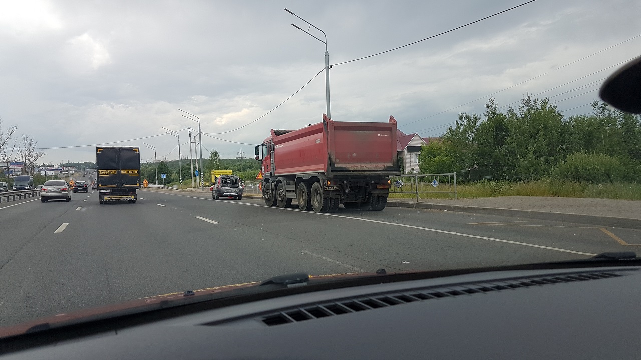 В понедельник, 11 июля, в нескольких метрах от надземного перехода произошла авария с участием лесовоза. Месяц назад здесь же, рядом с заправкой, перевернулся груженый самосвал, водитель погиб.