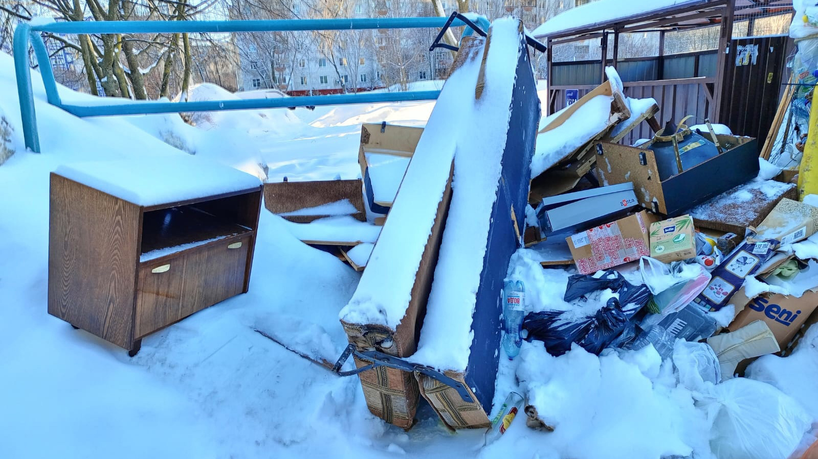 По словам местных жителей, свалка на улице Комиссарова образовалась после новогодних праздников. Коммунальщики не торопятся вывозить мусор.