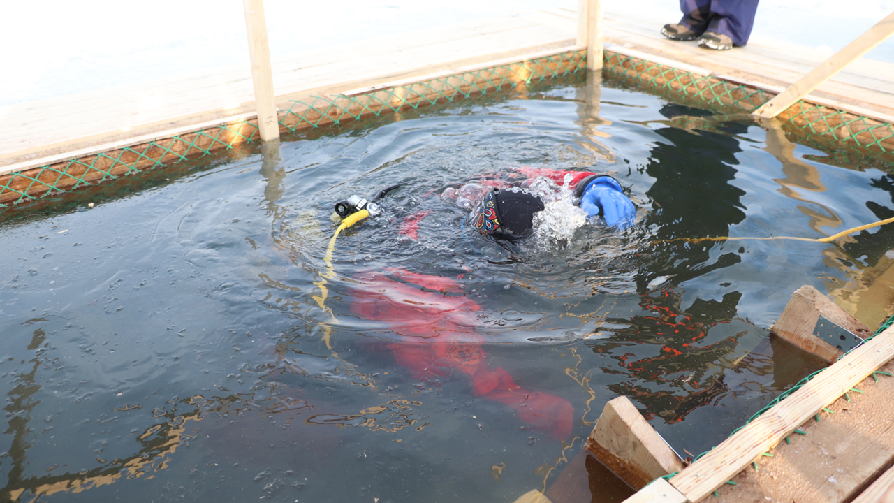 – Накануне коммунальные службы города расчистили снег на подходах к прорубям. Сходы к майнам оборудованы дощатыми настилами и трапами, а сами майны укреплены сетками и обрешетками, которые призваны воспрепятствовать случайному попаданию людей под лед, – сообщили в пресс-службе мэрии.