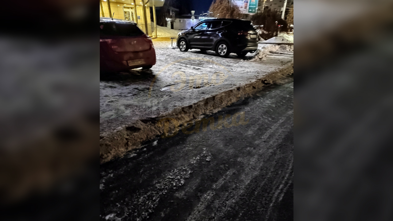 Однако пользователей не устроило, что коммунальщики освободили дорогу от наледи не полностью. По словам жителей, 20 сантиметров льда осталось на парковке, из–за чего автовладельцы рискуют остаться без бамперов и дна у машин.