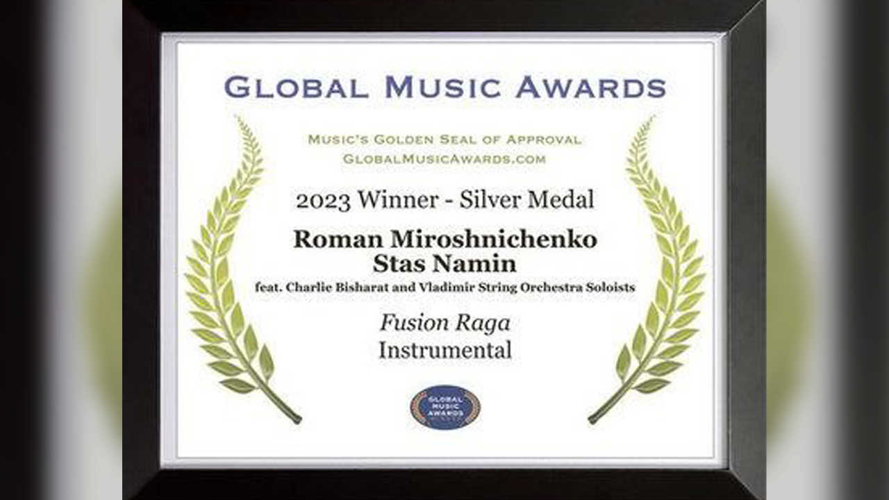 Известный гитарист Роман Мирошниченко, создатель группы «Цветы» Стас Намин и солисты владимирского Камерного струнного оркестра завоевали две серебряные медали на престижной международной премии Global Music Awards. Музыканты представили на конкурсе сингл Fusion Raga, сообщил губернатор региона Александр Авдеев в своем telegram-канале во вторник, 4 апреля.