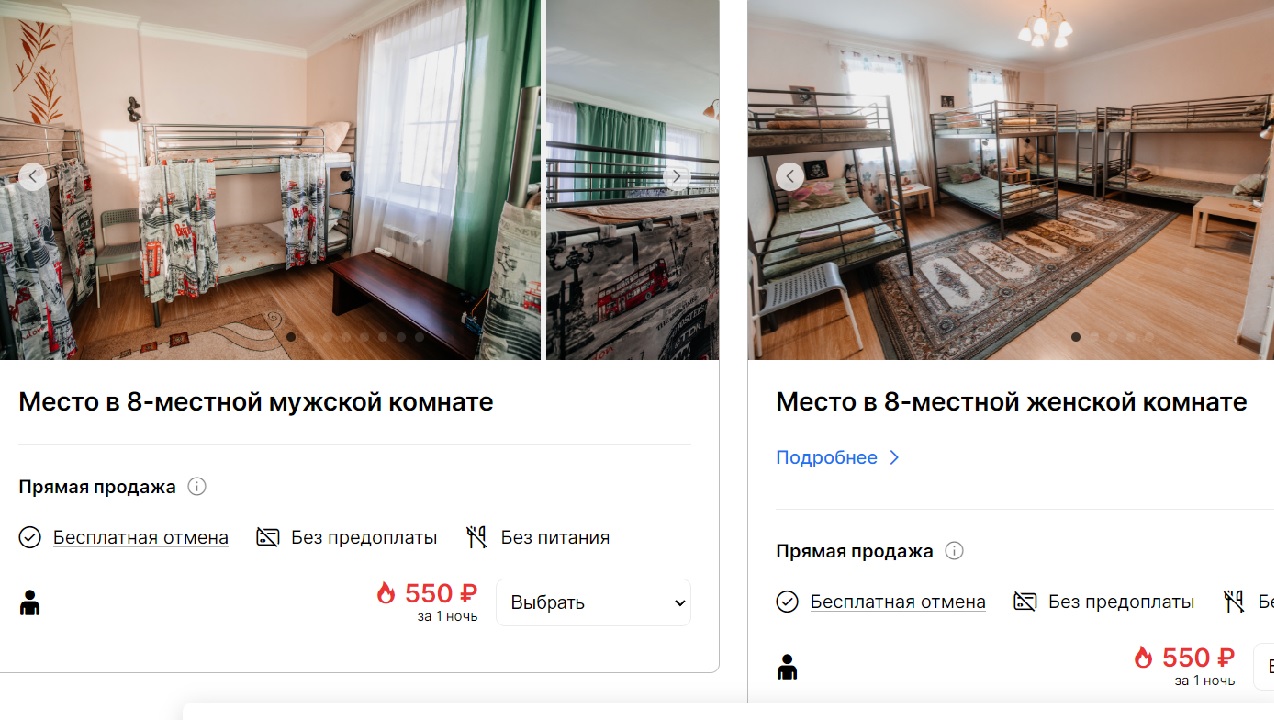 Сутки проживания начинаются от 550 рублей и заканчиваются 3,5 тыс. рублей.