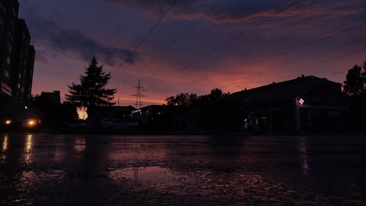 А этот снимок кажется эстетичным. Небо, отражающееся в лужах после дождя, окрасило их в малиновый цвет.