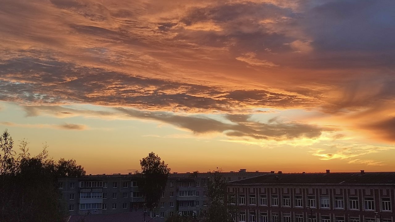 Облака окрасились в оранжевые, малиновые и фиолетовые цвета. Такой закат наблюдали владимирцы в воскресенье.