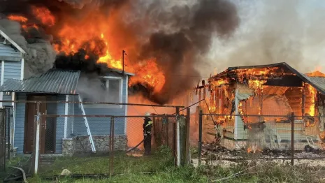 Вызов спасателям поступил в 5:58. На место выехали 27 человек на шести машинах. К моменту их прибытия один дом горел полностью, у второго – полыхала крыша.