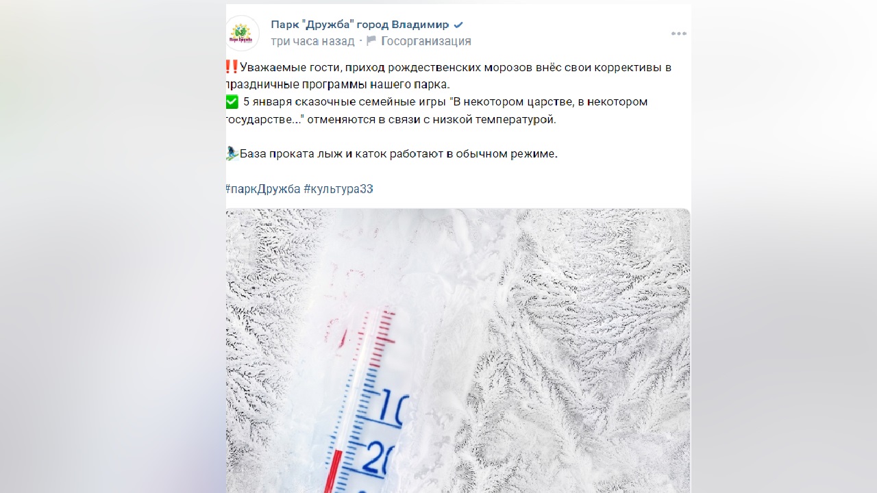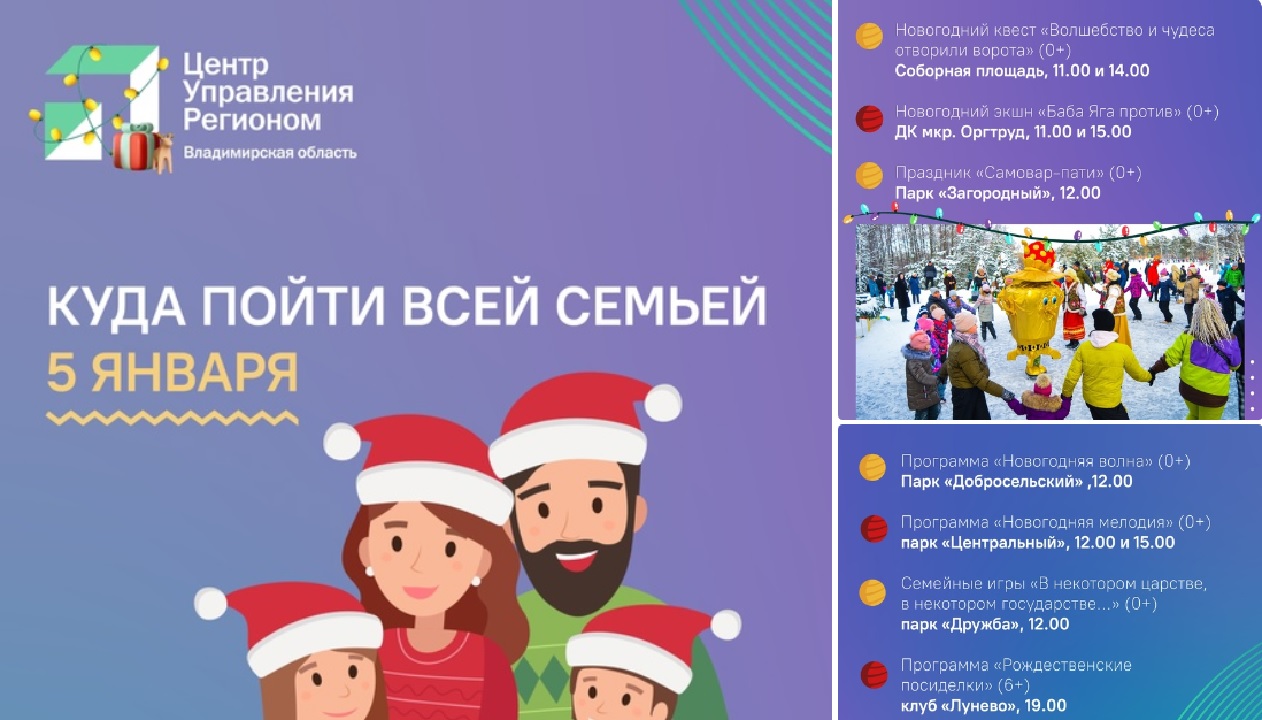 Центр управления регионом пригласил жителей на гулянья 5-го января. При этом парки отказались от некоторых мероприятий на открытом воздухе из-за аномально низких температур.