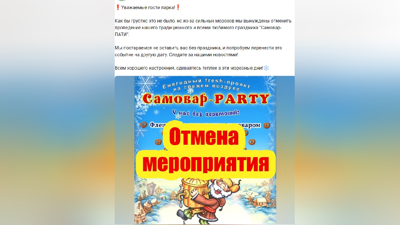 И одно из них – «Самовар Party» в Загородном, которое администрация парка отменила из-за морозов.