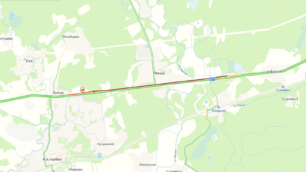 Объехать проблемный участок можно по платнику М-12 Восток или через Ставрово и Кольчугино.