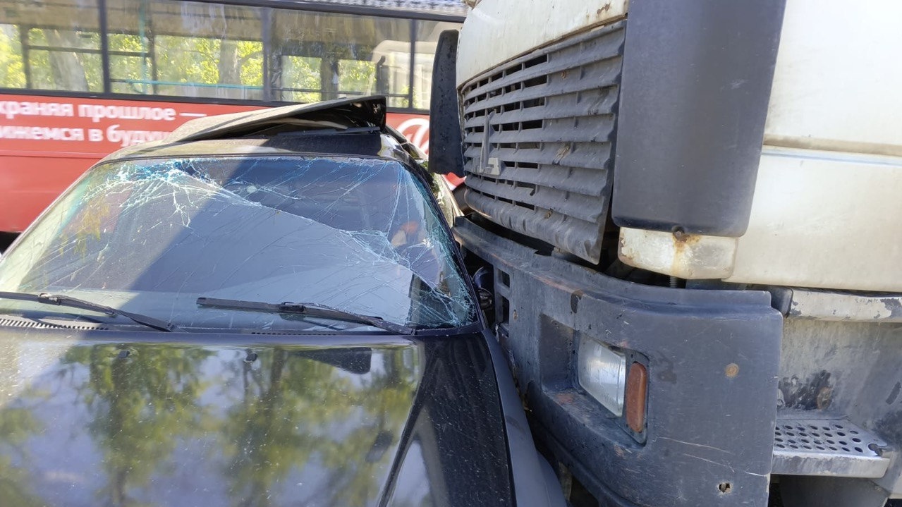 По предварительным данным, все произошло в 13:15 у дома №26. 61-летний водитель большегруза выехал на перекресток на красный сигнал светофора. В это время 35-летний автомобилист на иномарке поворачивал налево. Машины столкнулись.