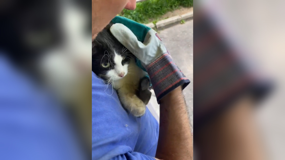 Кошку вытащили руками. Применять инструменты не пришлось. Сейчас животное в безопасности.