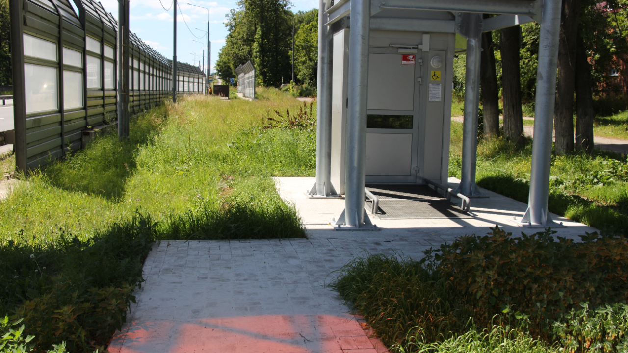 На лестничных сходах обустроены пандусы. Для маломобильных граждан есть подъемные платформы. Высота перехода над проезжей частью – более пяти метров.