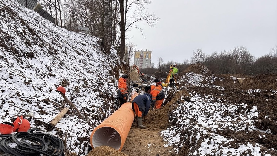 Параллельно с этим сразу на нескольких участках ведется реконструкция хозбытовой и ливневой канализации, а также водопровода. Продолжаются работы и у ДТЮ, где возводится насыпь дорожного полотна и формируется профиль дороги у дома №46.