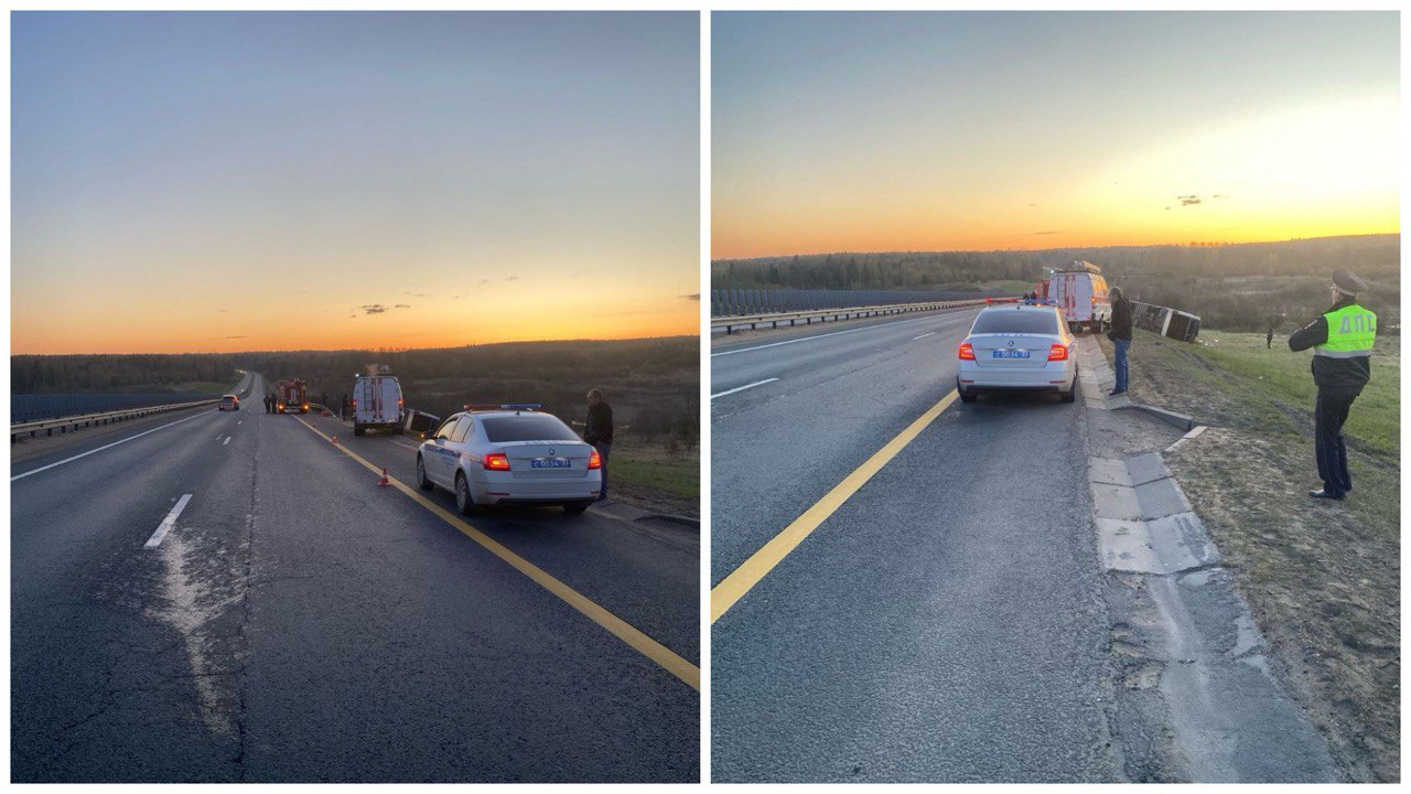 Около 2:40 на трассе М-8 «Холмогоры» Москва — Ярославль в Александровском районе на границе с Ярославской областью экскурсионный автобус слетел в кювет и перевернулся.
