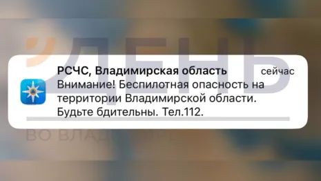 МЧС разослало жителям Владимирской области сообщение с предупреждением о беспилотной опасности. Сообщение пришло днем вторника, 6 мая.