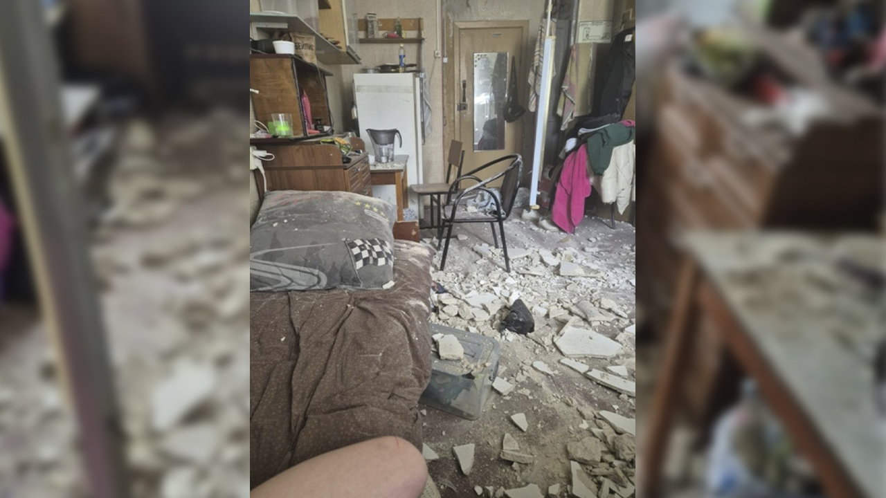 Судя по снимкам, потолок обрушился по всей площади комнаты – под обломками штукатурки оказались кровать, стулья, стол.