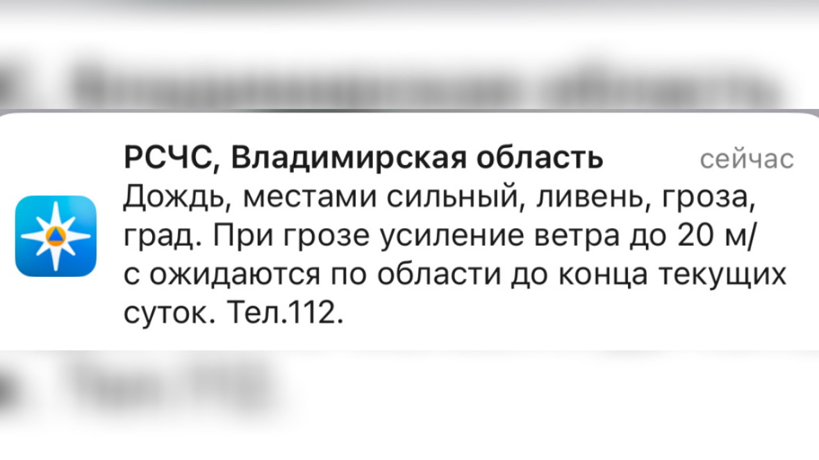 Ливень, гроза, град и ураган до 20 м/с ожидаются во Владимирской области в понедельник, 9 июня. Непогода будет бушевать до конца суток, предупредили в МЧС.