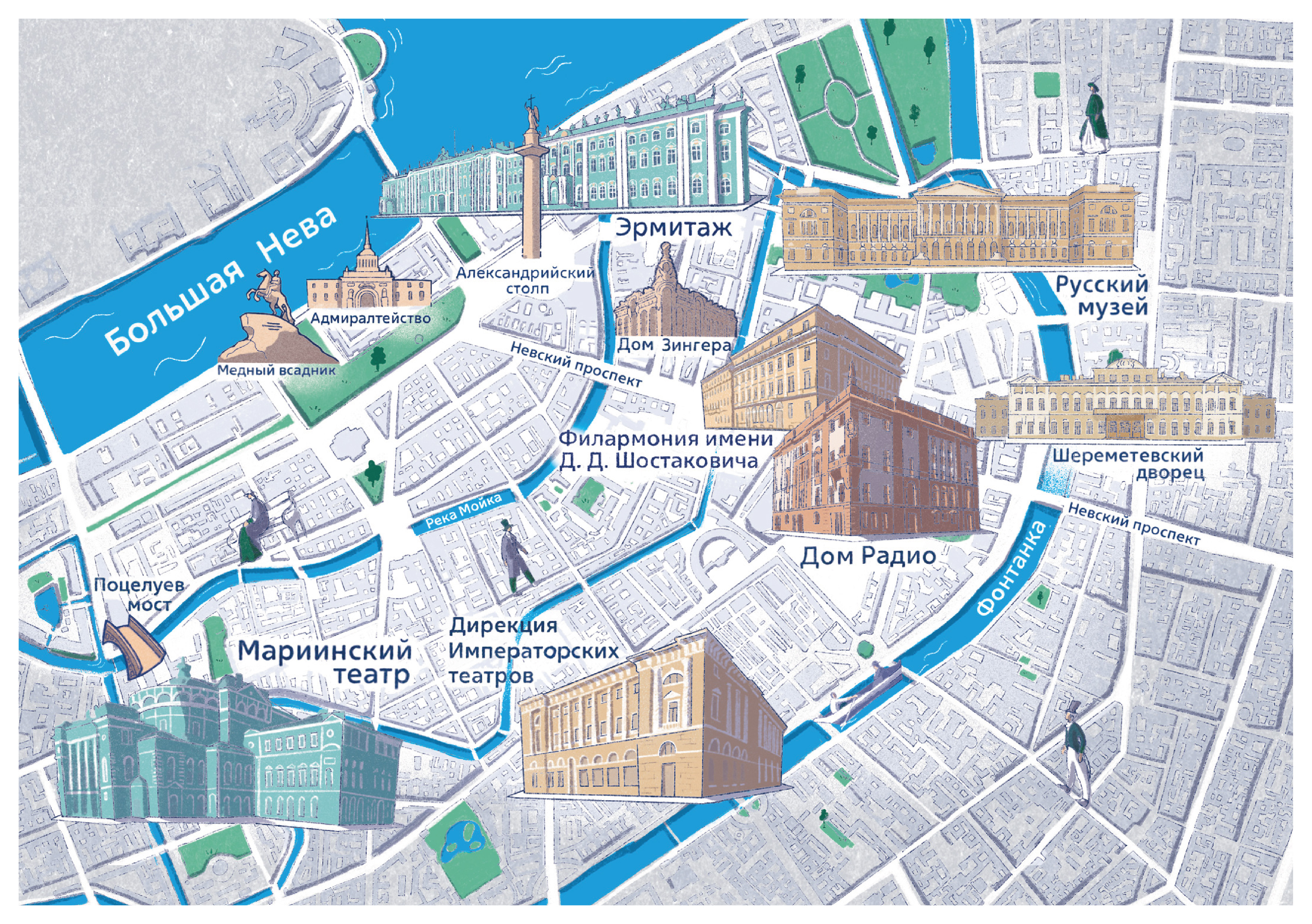 - Точки маршрута – семь институций Санкт-Петербурга, которые поддерживает банк: