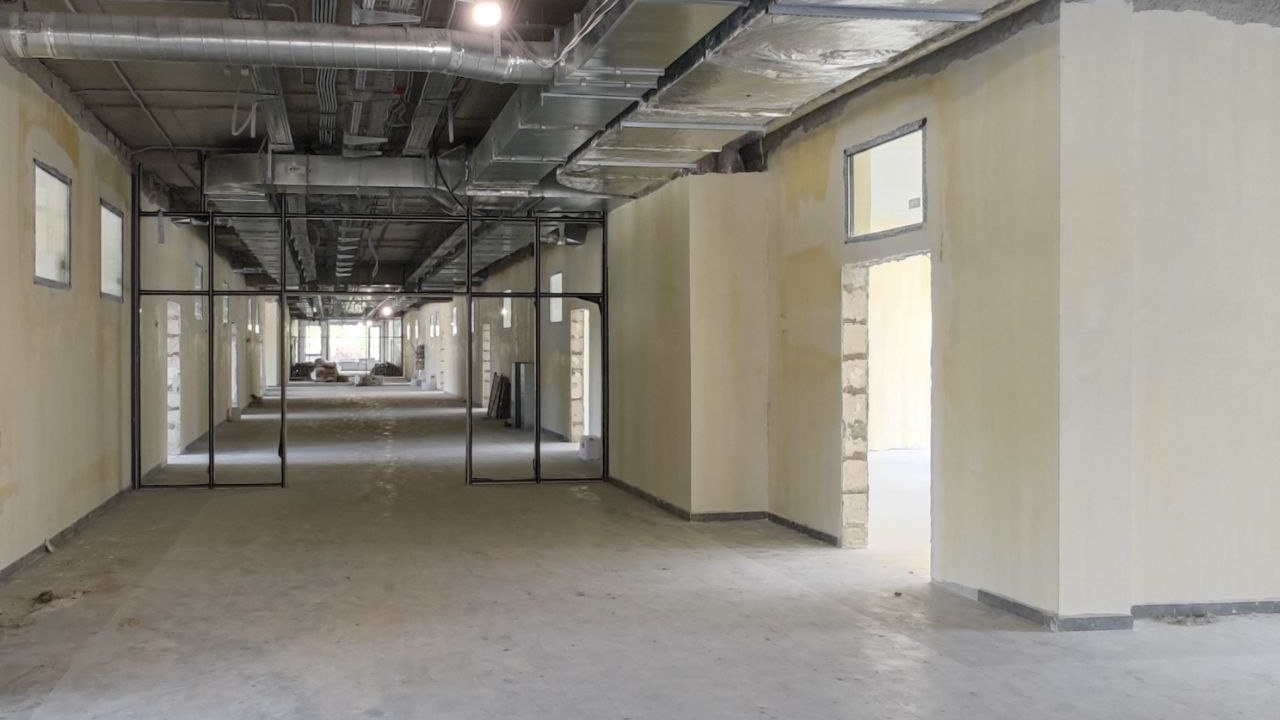 Общая техническая готовность объекта сейчас составляет более 80%. Ведутся работы по благоустройству, устройству внутренних систем канализации, водоснабжения, также планируется приступить к чистовой отделке помещений.