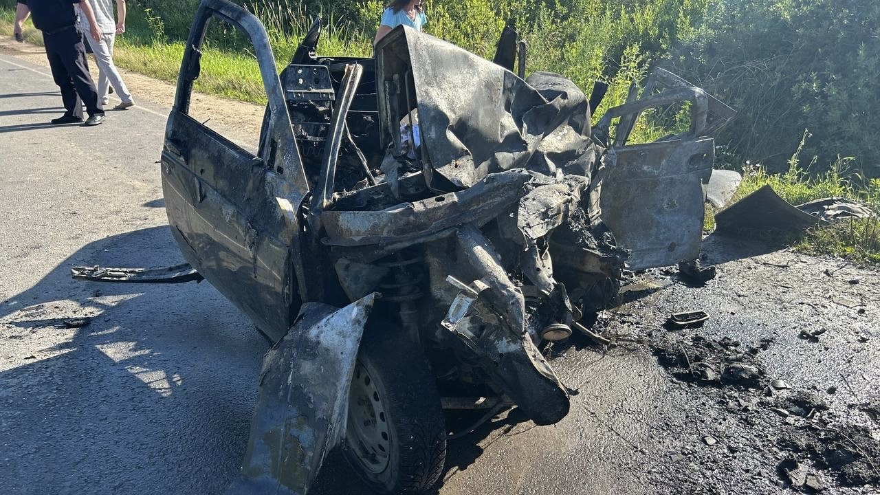 По предварительным данным, все случилось в 6:10 на улице Центральная. Водитель легковушки выехал на встречку, где влетел в большегруз под управлением 44-летнего автомобилиста. После столкновения произошло возгорание машин.