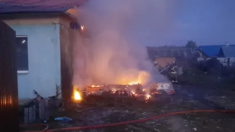 Вызов к дому №5 на улице Мира поступил в 02:50. На место выехали 10 спасателей на трех машинах.
