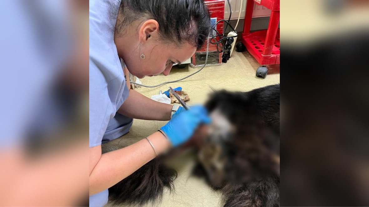 Питомца отвезли в ветклинику «Артемида». Доктор Екатерина Александровна стала сбривать шерсть в районе локации опарышей.