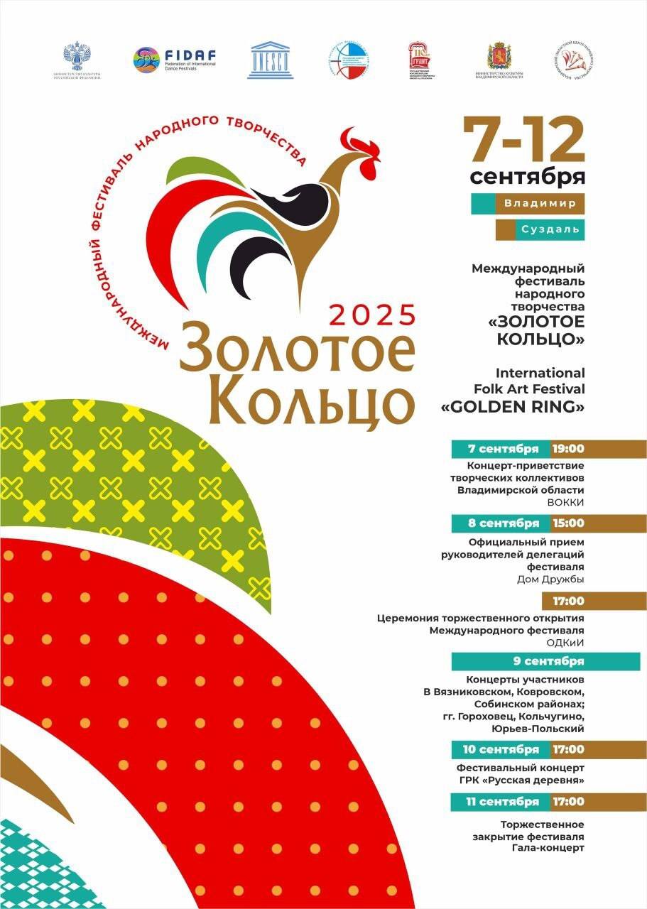 Владимирская область примет Международный фестиваль народного творчества «Золотое Кольцо-2025». Он пройдет в столице региона и в Суздале с 7 по 12 сентября, сообщила пресс-служба регионального правительства.