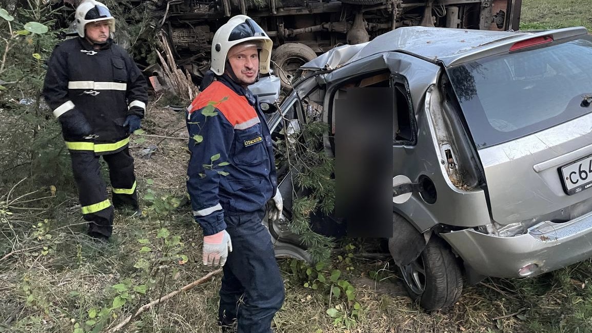 В аварии погибли два человека. Спасатели деблокировали их тела с помощью гидравлического аварийно-спасательного инструмента.