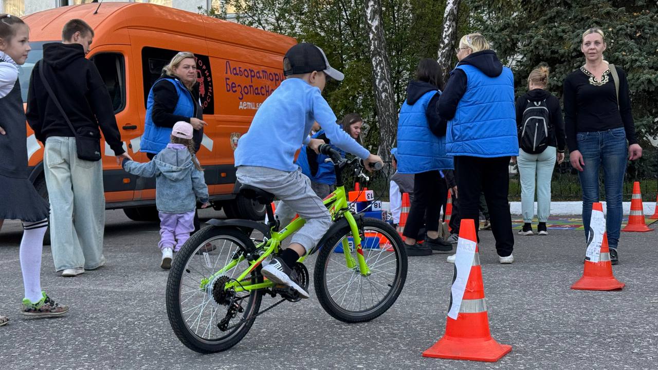 Еще на одной площадке малышей обучали правилам использования СИМ – их учили правильно кататься на велосипедах и самокатах.