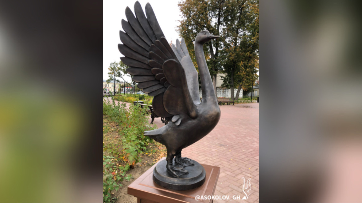 Бронзовый Гусь Удачи появился на улице Интернациональной, неподалеку от плоского фонтана в Гусь-Хрустальном. Об этом сообщил глава города Алексей Соколов в четверг, 25 сентября.