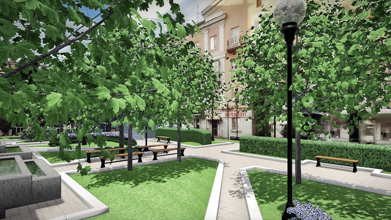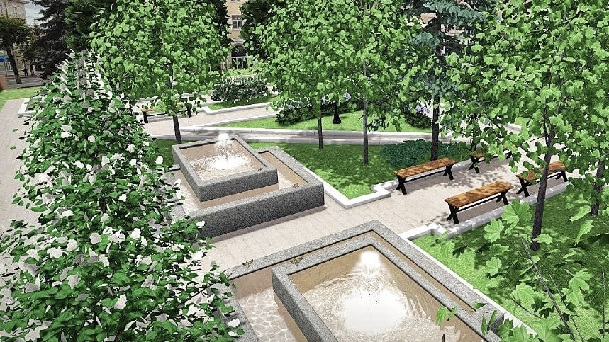 Здесь высадят многолетние деревья и кустарники – кизильник, сирень, клен, спирея. Планируется также укладка рулонного газона и установка новых фонтанов.
