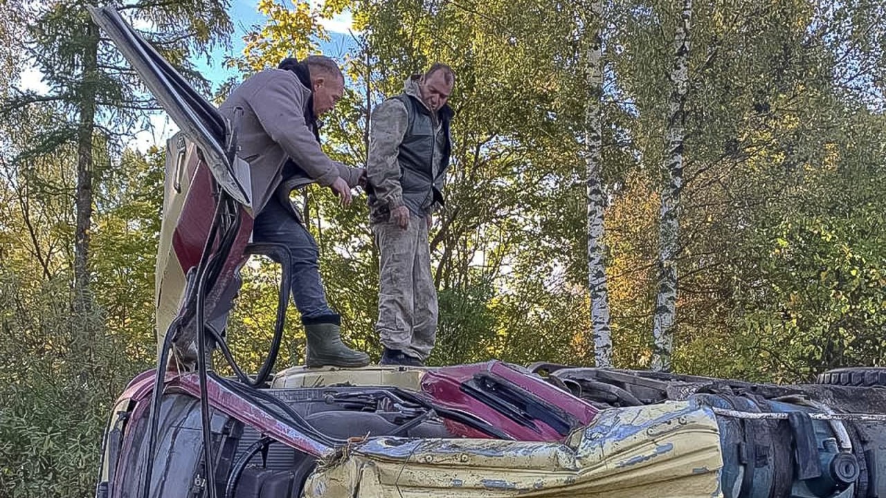 По предварительным данным, все случилось в 8:25 у поворота на село Гатино. На место выехали спасатели. Они увидели бетономешалку, находящуюся в кювете.