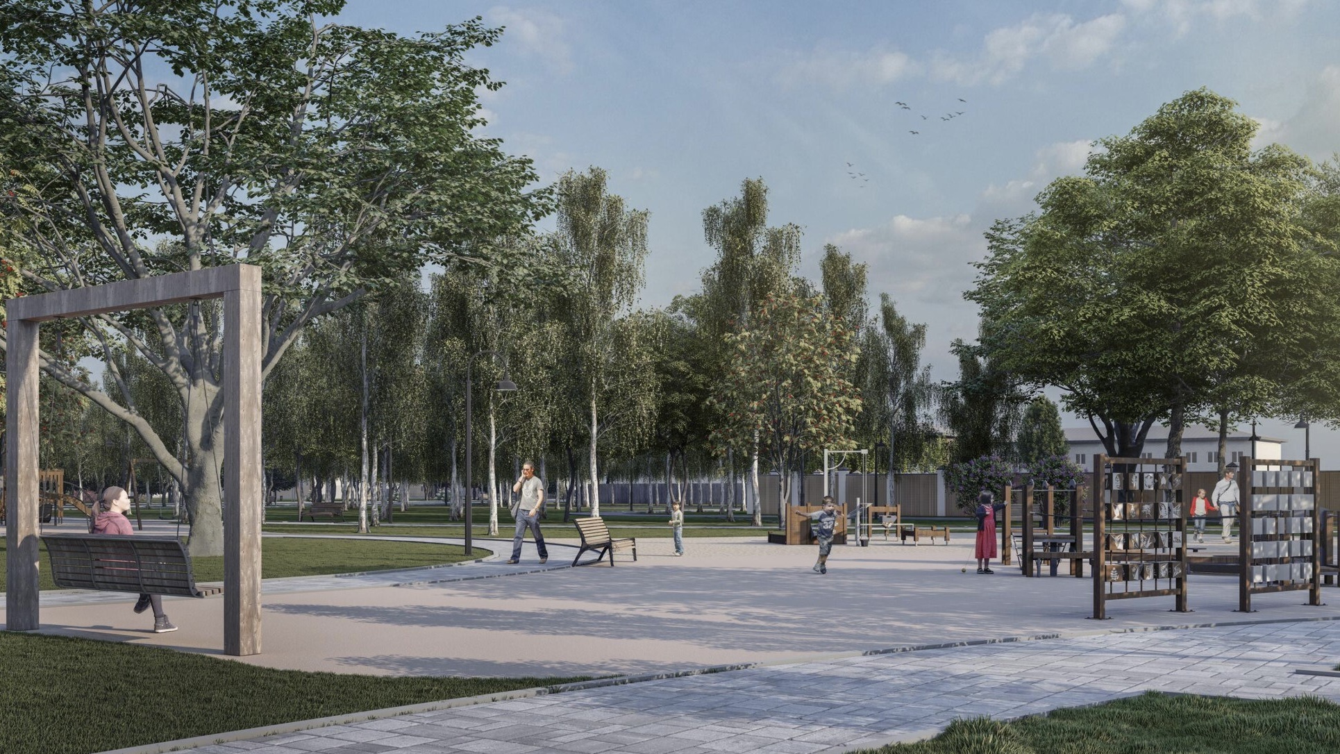 Уже выпилены сухие и аварийные деревья, удалена кустарниковая поросль, проложена сеть электроснабжения, заасфальтированы основные аллеи и уложена плитка на пешеходных тропинках. Все планировочные работы завершены. Парк готов к озеленению и установке новых объектов.