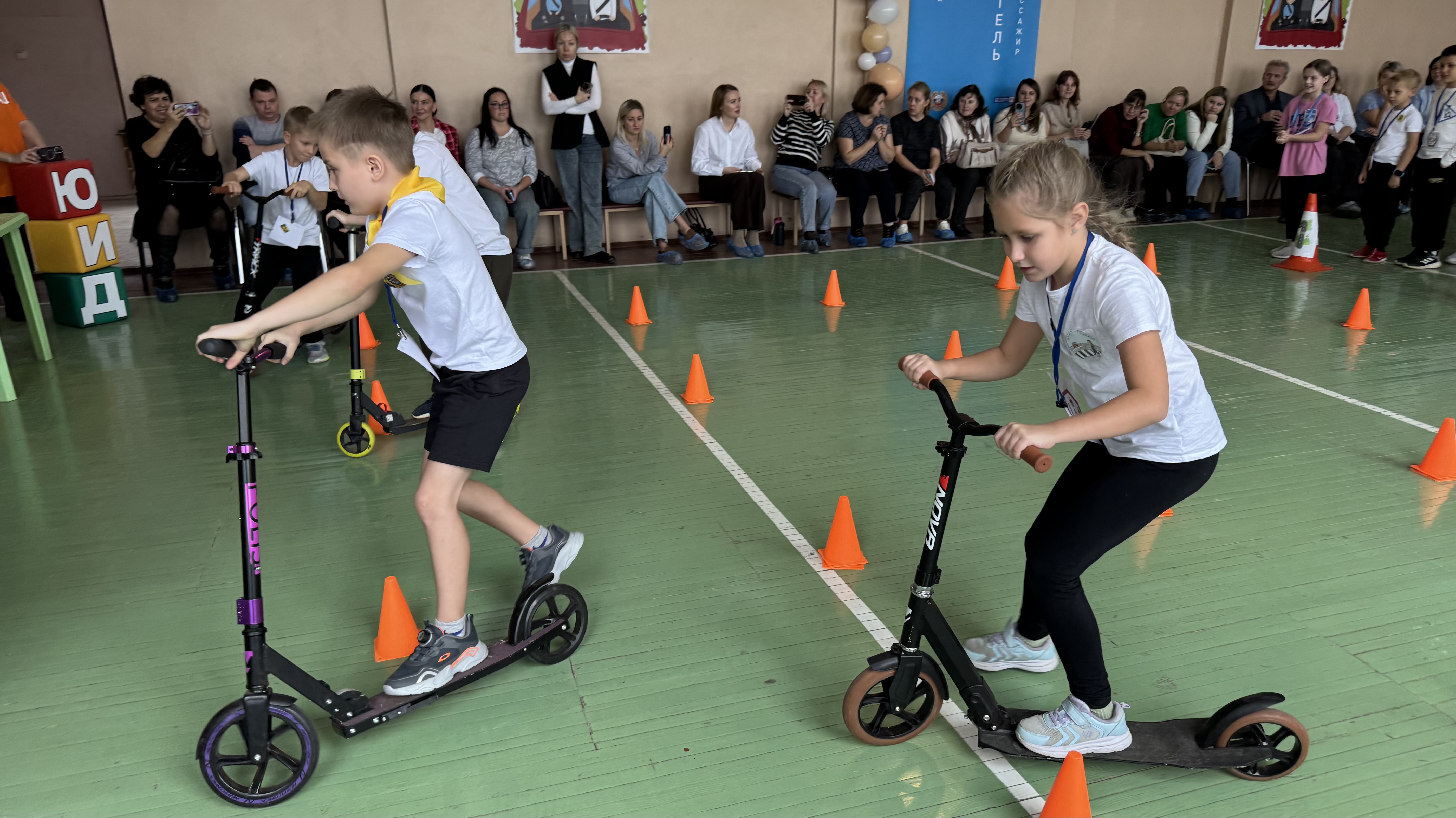 Среди конкурсов были и такие, которые на практике помогли отработать навыки пользования СИМ (самокатами, велосипедами, гироскутерами). К примеру, ребятам предложили пройти «трассу» на самокате между конусами, не задев «пешеходов».