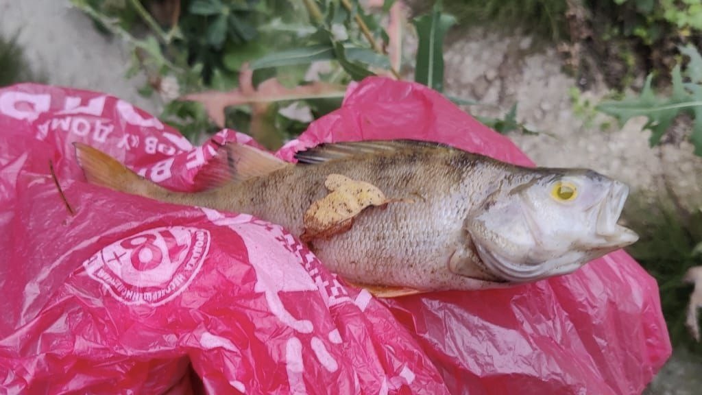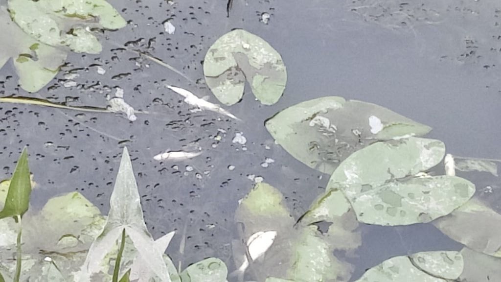 В водоеме были найдены особи погибшей плотвы, окуня, щуки, жереха, голавля. Вода в этом месте была окрашена в неестественный темно-синий цвет и имела выраженный гнилостный запах.