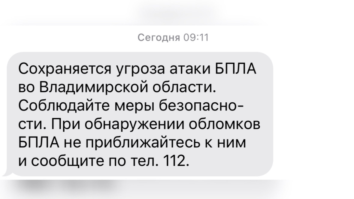 Угрозу атаки БПЛА объявили во Владимирской области в 04:15 среды, 5 ноября. Рассылка пришла от МЧС.