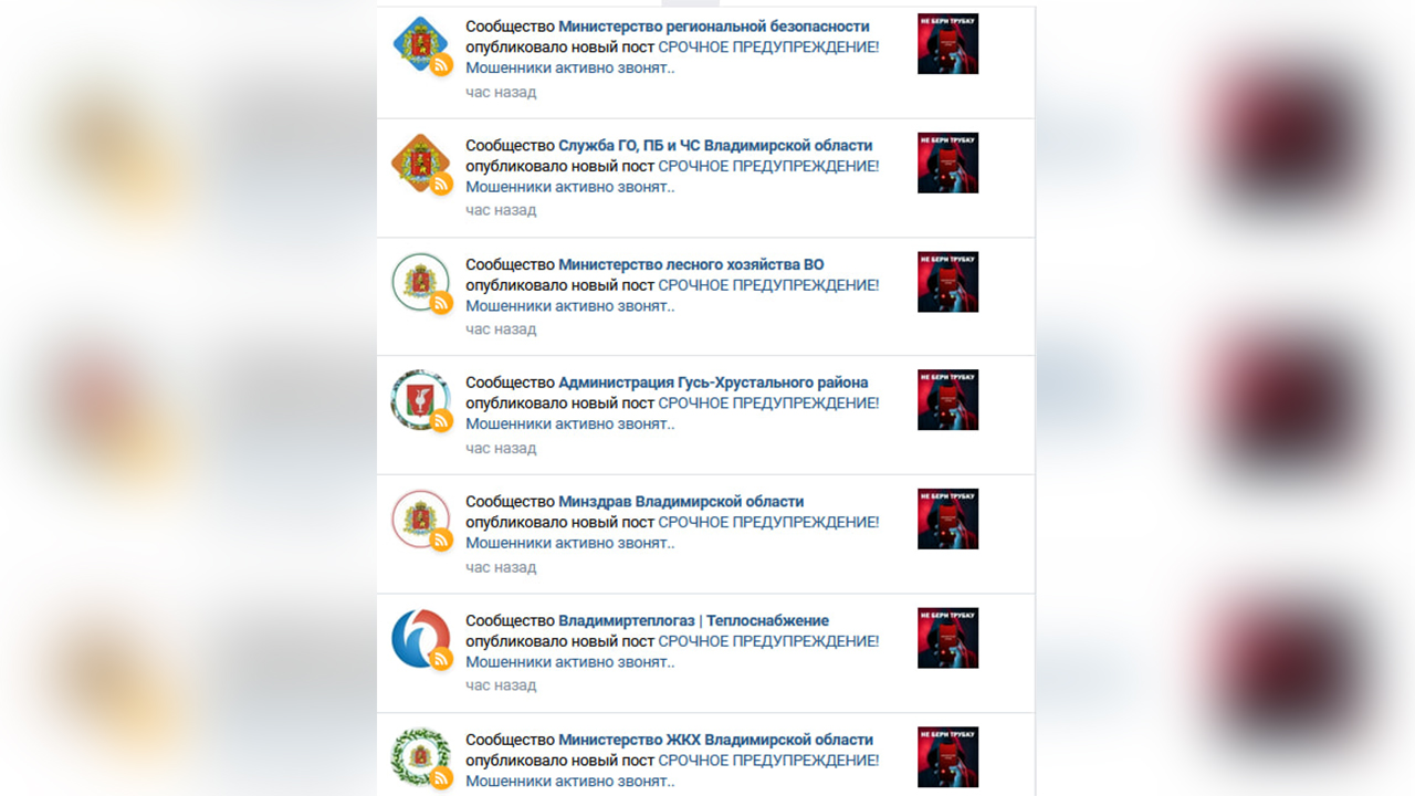 Чиновники, спасатели, коммунальщики и охотники во Владимирской области распространили через соцсети «срочное предупреждение». Посты с одинаковым текстом про мошенников появились в десятках официальных пабликов днем вторника, 6 января.