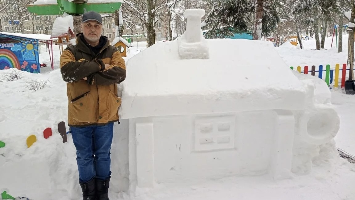 Игорь рассказал, что создает снежные скульптуры, чтобы дарить радость детям и взрослым, а заодно и самому отдохнуть душой.