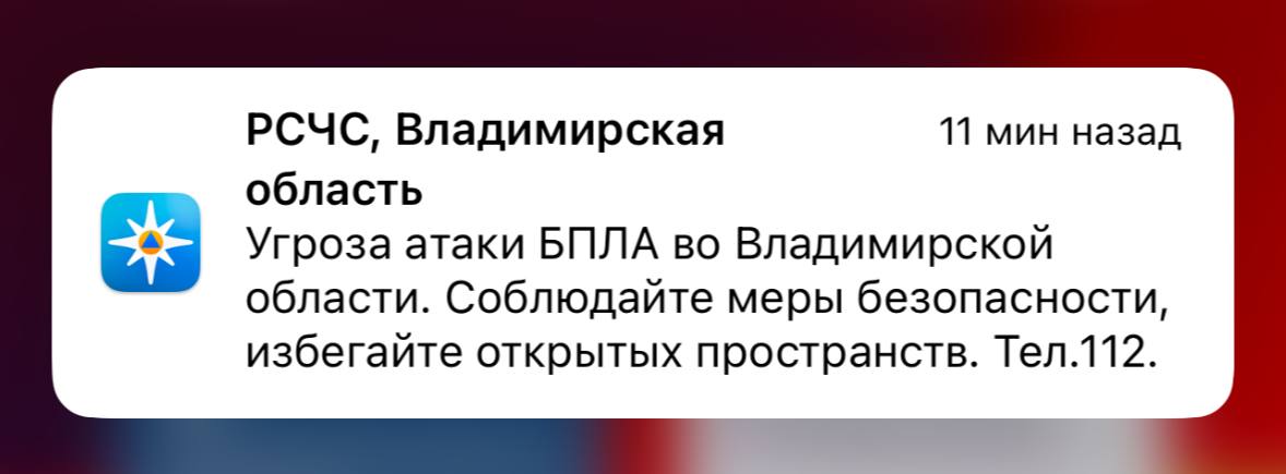 Владимирской области в сводках Минобороны пока нет. Официальных комментариев от пресс-служб облправительства и мэрии пока не поступало.Жителей призвали избегать открытых пространств, а в случае ЧП звонить по номеру 112.